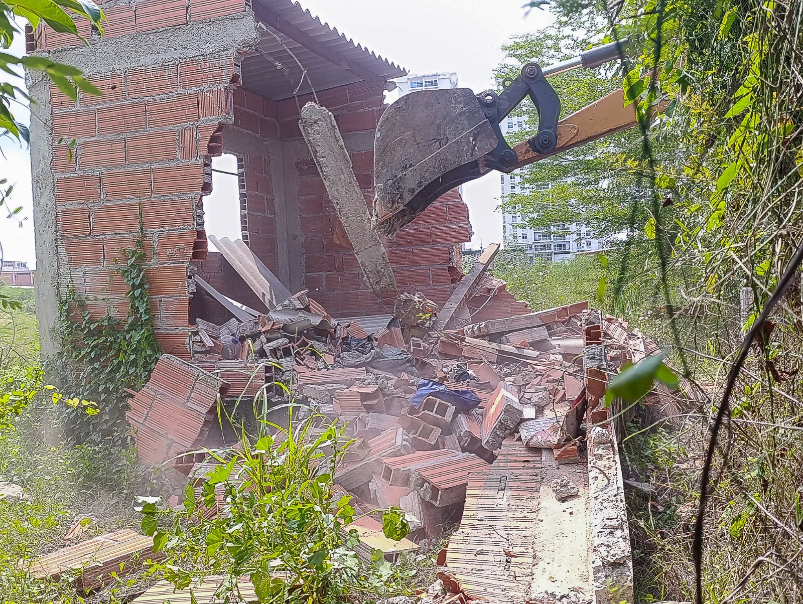 En julio de 2025, TransCaribe acudió a la Inspección para hacer efectiva la medida correctiva, y con apoyo de la Dirección de Apoyo Logístico, Secretaría de Infraestructura, Secretaría General, se coordinaron las labores para materializar la diligencia y proveer el personal de remoción y maquinaria, realizándose este jueves la remoción de los elementos instalados indebidamente, y la demolición de un área construida en espacio perteneciente al Distrito y a TransCaribe.